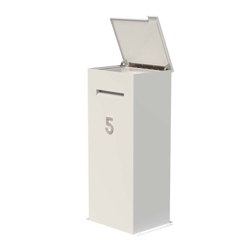 De briefopening is aan de voorzijde geplaatst. Aan de bovenkant is een deksel voorzien waarin de pakketbezorger het pakket ( max. 40 x 30 x 25 cm) kan plaatsen. Het openen en sluiten van het deksel zorgt dat pakketten en brieven veilig onderin de brievenbus belanden.