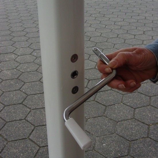 Deze horecaparasol is leverbaar met een tegelstandaard. Deze basis, mits verzwaard met betonnen tegels, biedt voldoende steun voor uw parasol. U kunt de parasol ook een vaste verankering geven met het grondanker.