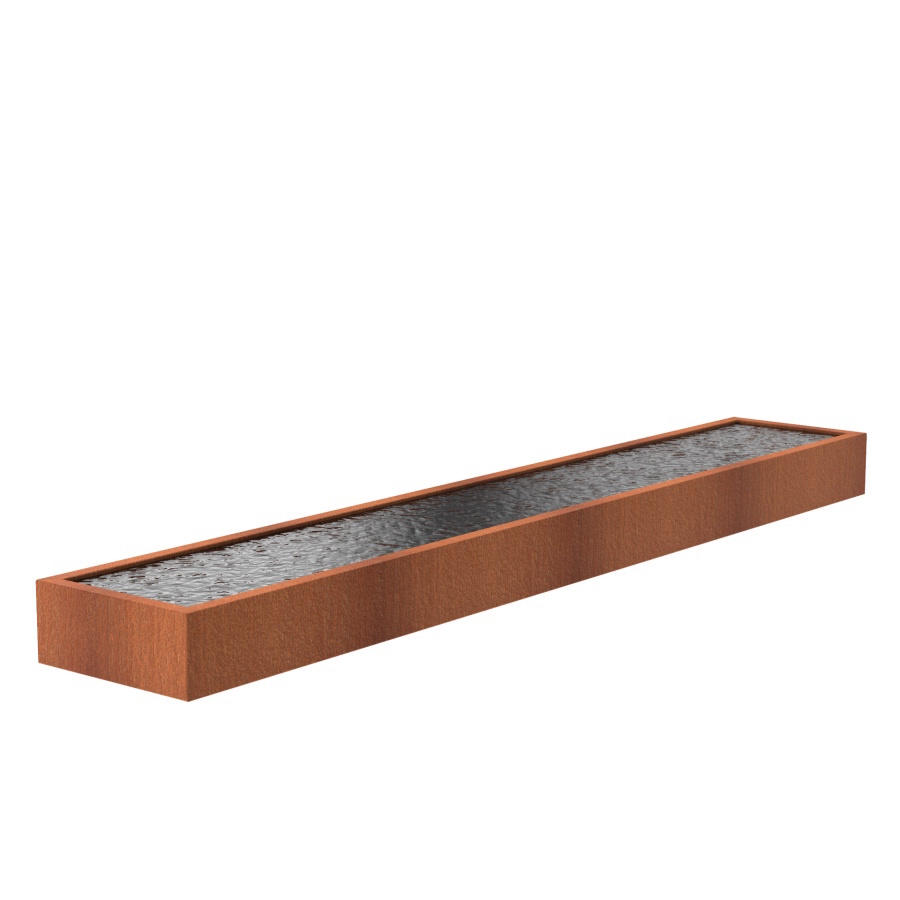 De vijvers worden ongeroest afgeleverd, met enkele weken/maanden zijn de bakken volledig geroest. Hoewel de patina permanent is, kan het voorkomen dat er, zeker in de eerste maanden, onder invloed van bijv. regen wat uitspoelt / afgeeft. Alle vijvers zijn aan de binnenkant voorzien van een sterke en slijtvaste 2mm dikke polyurea coating.